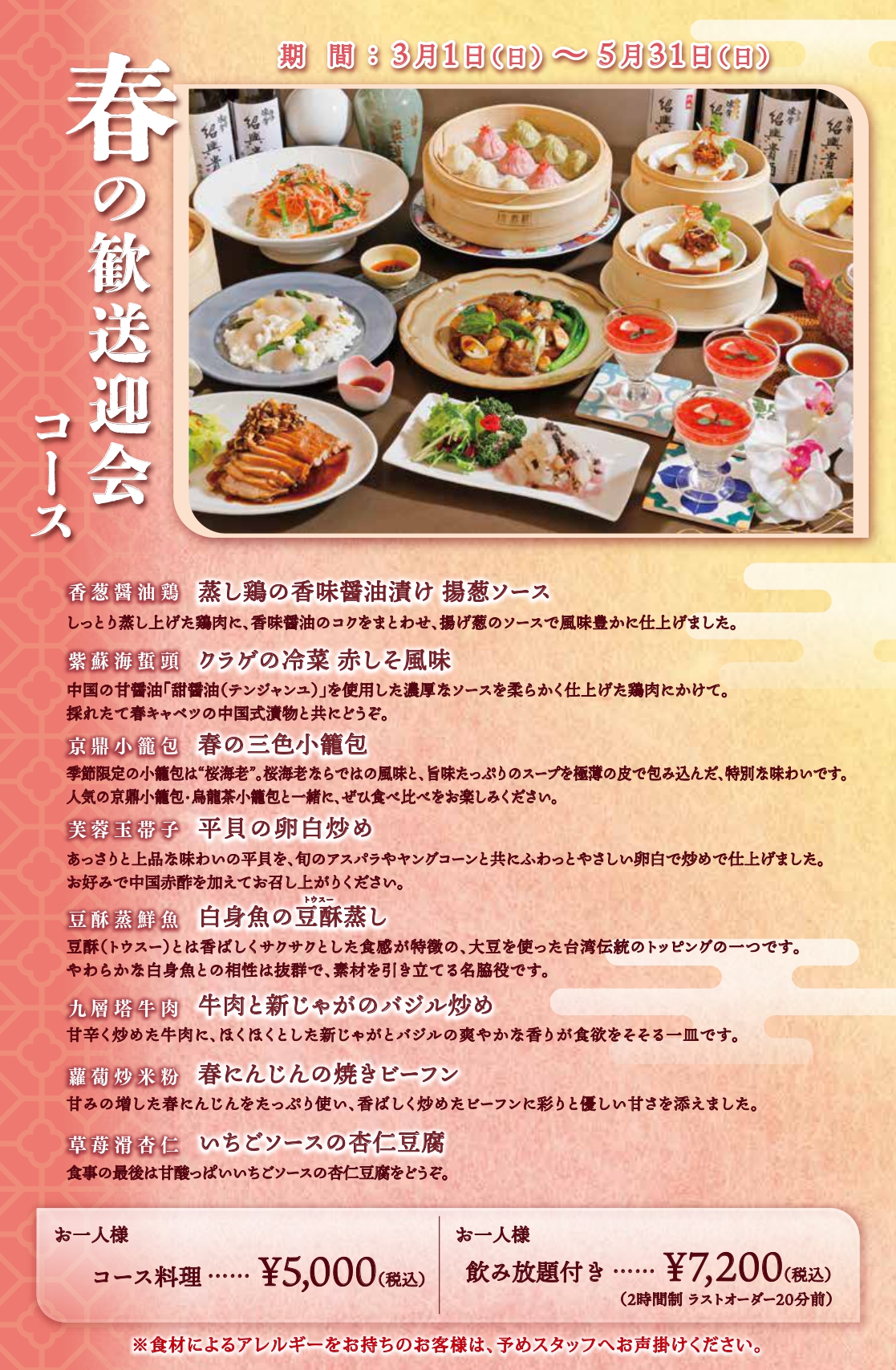 【予約受付開始】春の歓送迎会コース(全8品)